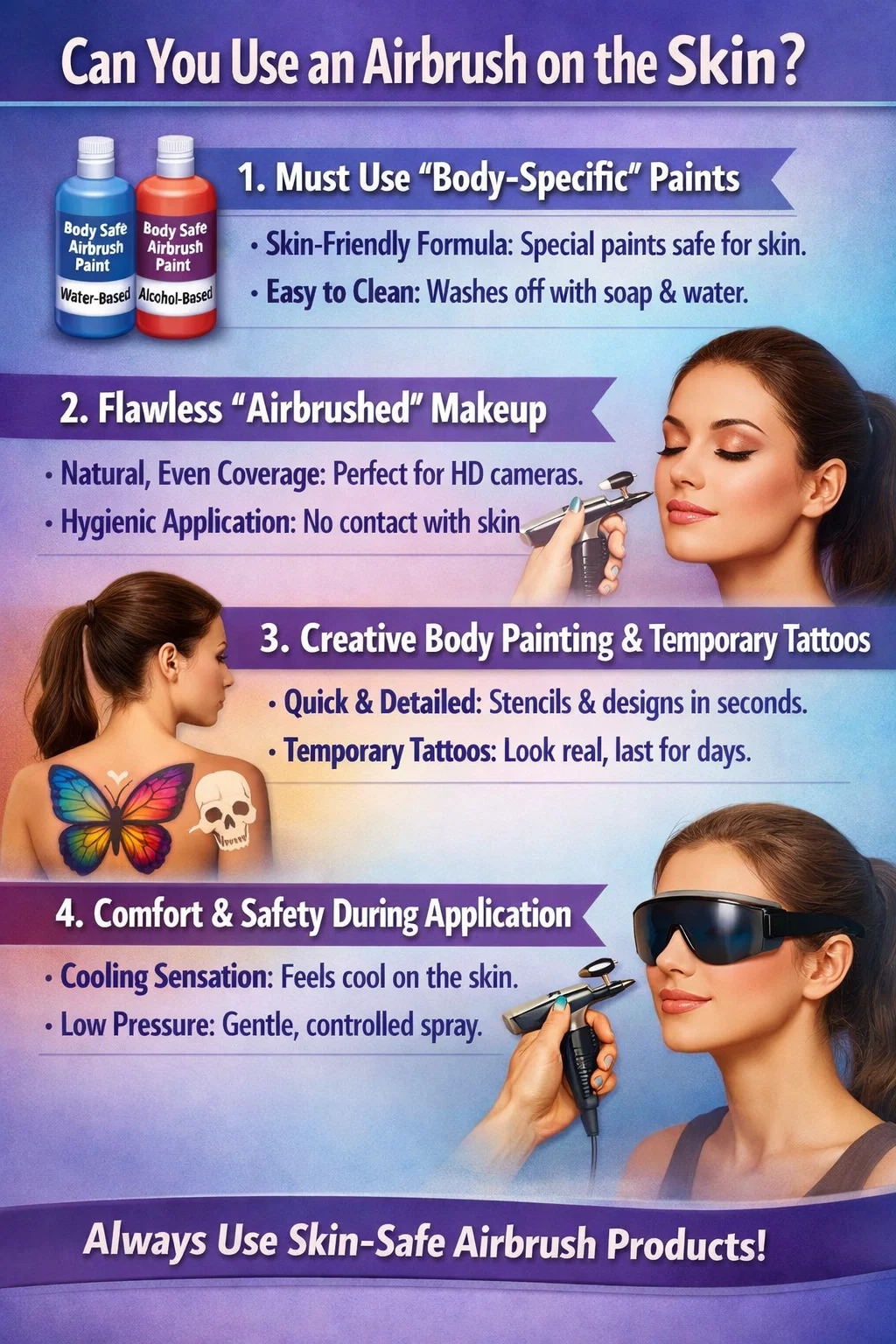 Formule respectueuse de la peau : les peintures aérographes spécialement conçues pour la peau sont généralement à base d'eau ou d'alcool, et leurs ingrédients sont conformes aux normes de sécurité cosmétique. Ils ont une texture extrêmement légère et n'obstrueront pas les pores ni ne provoqueront d'allergies comme les peintures ordinaires.